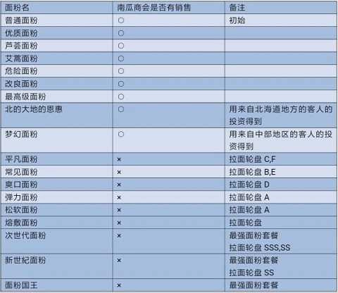 继续下拉菜单,你会看到面条和汤底各自对应的数值。这些数值,大多越高越有利。比如说,面量决定了顾客能否吃得饱,香味会影响顾客排队的积极性,而材料费关乎你的收入(它越低越好)。价格不能超出顾客的消费水平,味道等因素则会影响店铺评分。值得注意的是,上述这些方面,都能够借助道具在后期加以调整,一定要充分利用好道具。