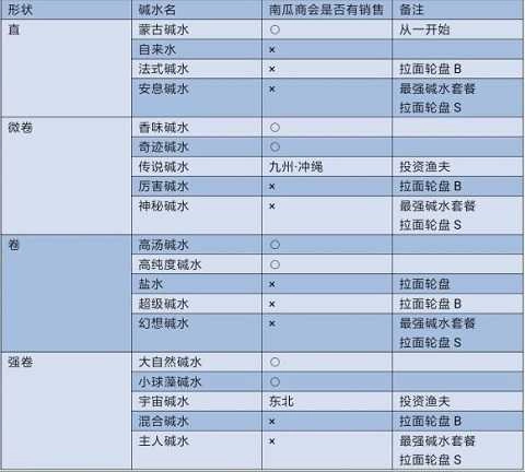 首先,我们打开一份成品拉面,便能看到与之相关的具体数据,包括味道、魅力、香味、浓度、价格、材料费以及面量。