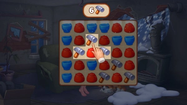 3、借助消消乐的玩法获取装修所需费用,只要把三个一样的图标连接起来就能消除。