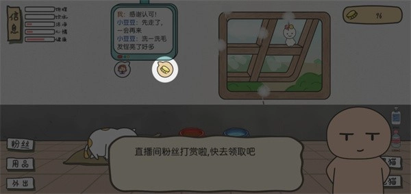 8.若左上角显示小猫的健康度不佳,玩家可以点击“洗猫”功能,为小猫进行清洁护理。