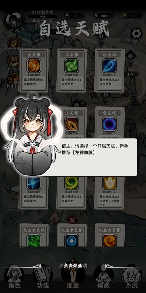1、首先是开局自选天赋,新手玩家推荐选择龙神血脉,有着较高的成长性。