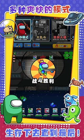 《太空狼人大乱斗》最新版本是一款趣味性十足的动作射击类游戏,由安徽新米网络科技有限公司匠心打造。游戏采用Q版人物角色与2D游戏画面,于紧张氛围中融入一抹诙谐。而且,游戏画面简洁清晰,具备丰富的角色皮肤与武器。玩家会依据生成的武器装备,使自己所在的团队愈发强大。