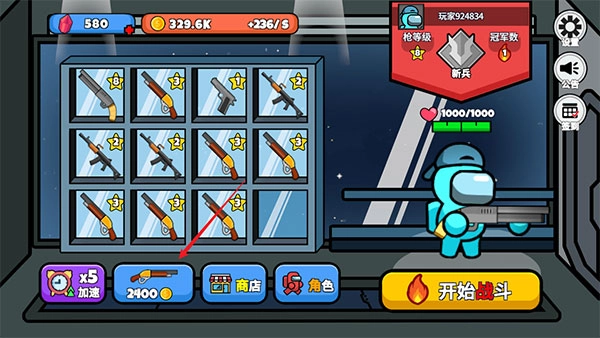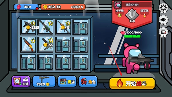 1. 进入游戏之后,第一步是购买武器并进行合成升级。