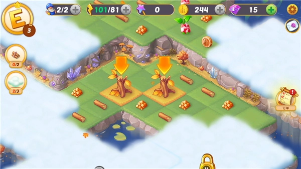 2、将木头进行合并,从而获得小木屋,接着把小木屋继续合并,最终建成木头豪宅。