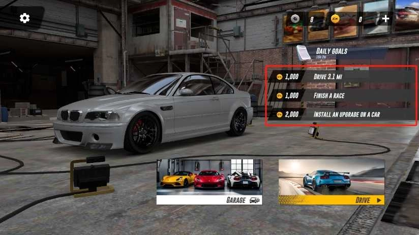 6、即刻着手完成日常任务。首个任务颇为简易,驾车过程中达到指定数值便可完成。第二个任务则是完成一场比赛,玩家需把车开到下图所示之处。