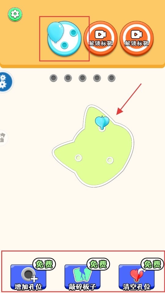 3、点击上方气球,触发吸光功能,就能消除同色螺丝。