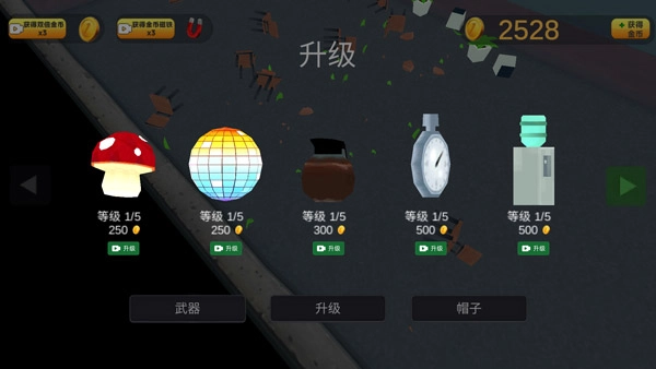 进入升级界面后,玩家会发现丰富多样的增益道具可供挑选,通过自由组合升级,能为后续关卡挑战提供更有利的助力。