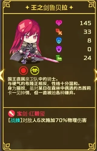 月光剑的核心价值在于其白色羁绊——整个游戏里,除了那两个自带随机羁绊的角色外,就只有她和金刚骑士是拥有白色羁绊的。目前她离升星只差1个碎片,升到2星后输出能力会有明显提升,可以先留着用,等后续抽到更合适的角色再替换她。