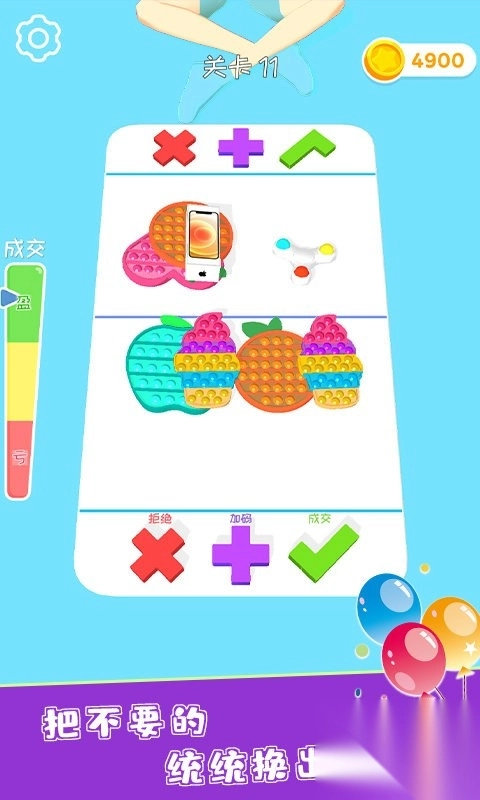 多玩法解压体系:包含物理模拟(捏泡泡)、逻辑解谜(玩具交换)、创意制作(手工DIY)等多种玩法,能满足不同的解压需求,帮助释放焦虑情绪。