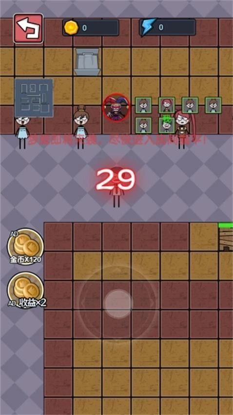 在这款游戏里,玩家得躲开猛鬼的追击,找一间合心意的宿舍藏起来,同时要发展经济、搭建炮台,以此来抵挡猛鬼的进攻。