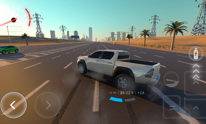 充满异域风情的赛道设计:游戏里的赛道灵感源自传统阿拉伯建筑与自然风光,从广袤沙漠延伸至繁华城市,从古朴清真寺切换到现代摩天大楼,每一次驰骋都是对阿拉伯文化的深度探寻。
