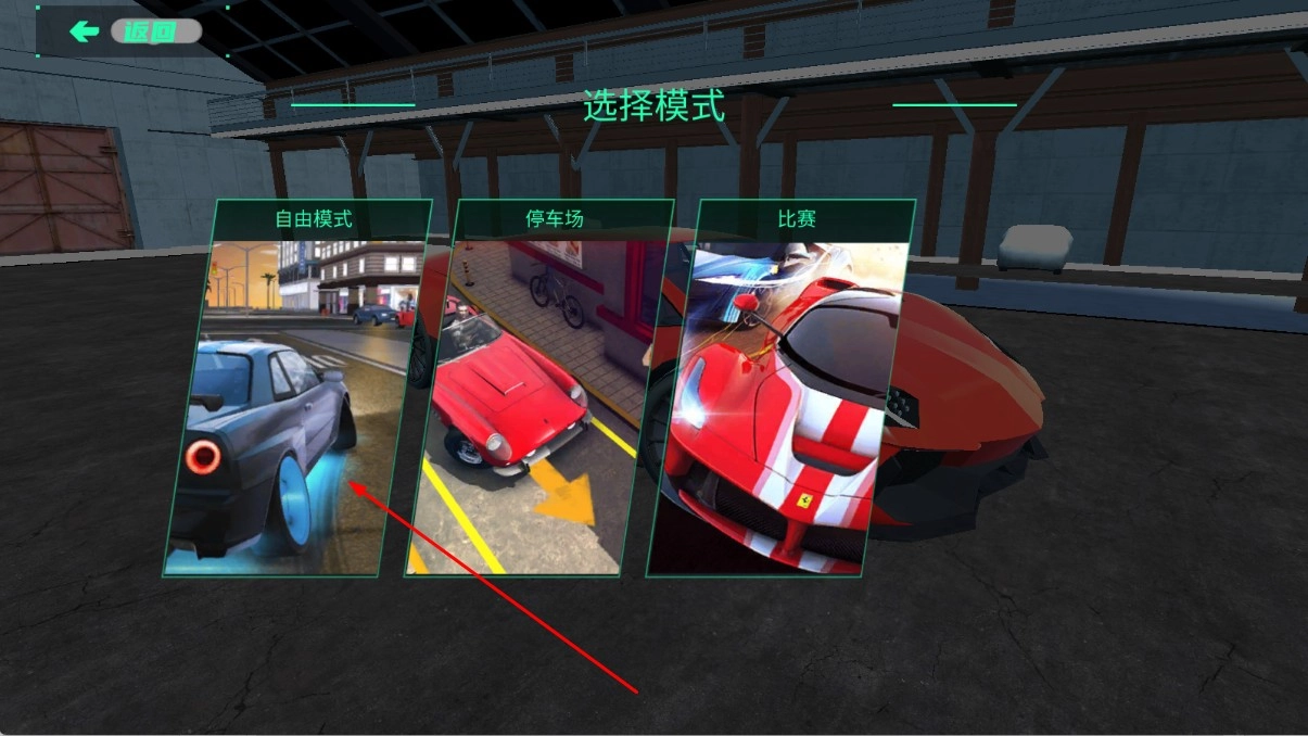 在模式选择界面中,设有自由模式、停车场、比赛等选项。若选择自由模式,你可以驾驶跑车在城市道路上自由驰骋,尽情探索各种场景。