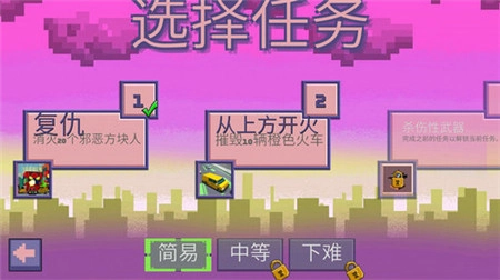 玩家将化身为方块人,依据任务要求消灭更多的方块人和汽车。游戏设有不同关卡,每个关卡对应着不同的任务与场景。玩家能够自主选择射击视角,无需消灭所有敌人,只要达成任务即可通关,一场紧张刺激的像素枪战即将拉开序幕。