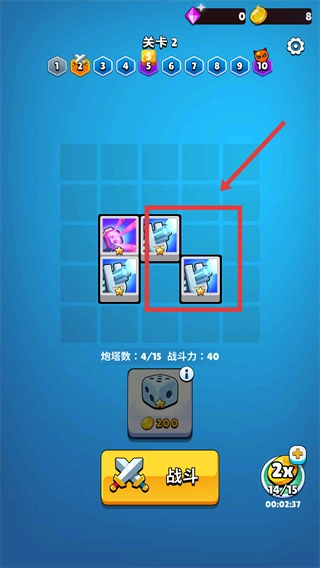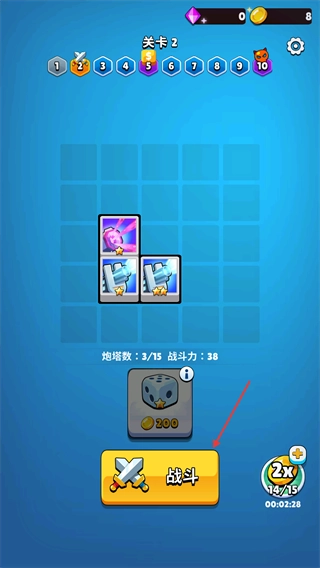 在领取新炮塔之后,再次点击底部的【战斗】按钮,即可开启新的挑战。