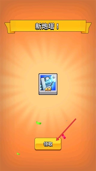 当【新炮塔】的解锁提示被触发后,点击界面上的【领取】按钮,即可获得这个新炮塔。