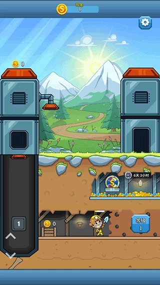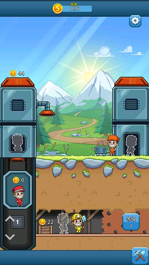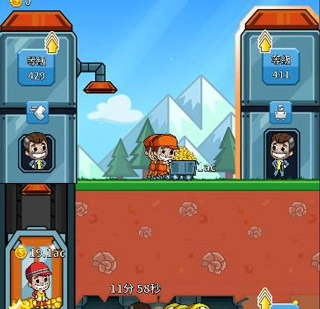 当经理头上出现小锤子图标时,点击该图标就能为正在开采的矿工提供加速效果,但加速时长仅有60秒。黄色矿工的箱子、电梯以及地面上推小车的矿工,它们各自的最大金币容纳量都是1000。