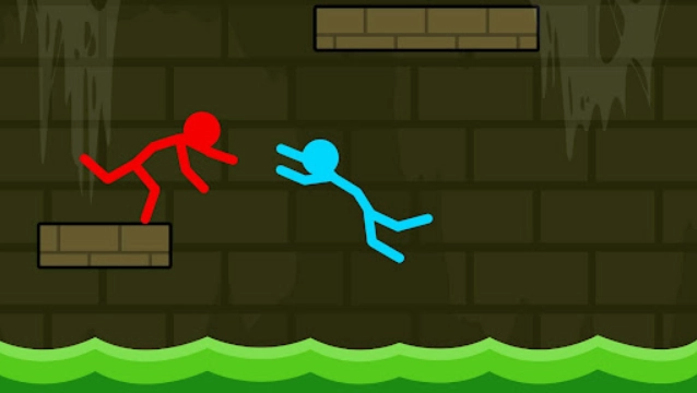 玩家需同时操控代表火焰的红色火柴人与代表水流的蓝色火柴人,利用二者各自的特性去谜题、启动机关。