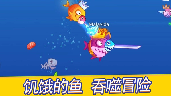 在《海底生存大猎杀》这款游戏里,你会化身为一条灵活的小鱼,在游戏场景中自由穿梭。利用小鱼头顶的尖角去撞击其他鱼类,吞噬它们的能量就能让自己不断变强!场景中可以激活冲刺技能,瞬间提高移动速度,尽情展示你的极限操作——一边躲避敌人的追捕,一边精准锁定猎物完成捕食!更有趣的是,小鱼游过的轨迹还能解锁特殊效果,这些痕迹带有攻击属性,既能冰冻对手,也能发射飞镖命中目标,帮助你轻松赢得比赛、击败大首领!