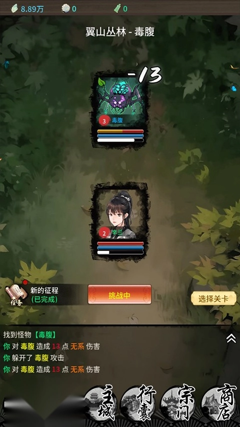 开始挑战后,主角会自动攻击敌人,击败敌人可以获得经验、矿石等资源奖励。