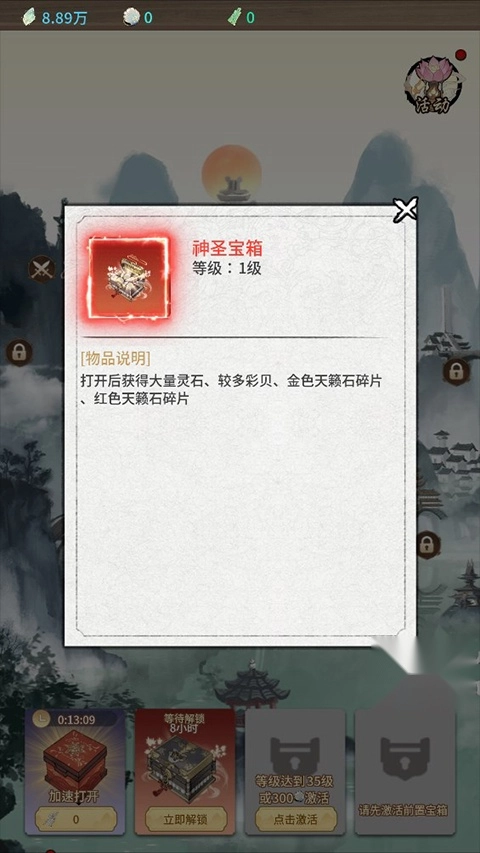 游戏里还藏着各式各样的宝箱等你开启,只需等待一段时间,打开后就能收获丰厚奖励,宝箱的等级越高,能拿到的奖励也就越丰盛。