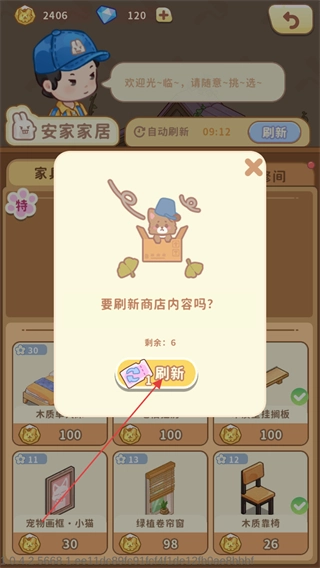 3、按照任务要求点击上方的刷新按钮,并确认使用刷新券来刷新商店内容。