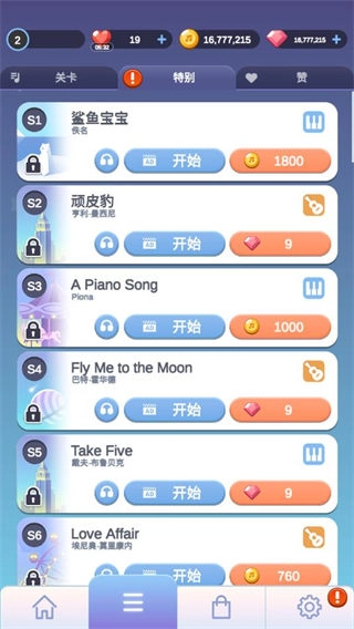 1.这款游戏配备了多样的任务系统,玩家能够借助完成任务获取红宝石,进而购买新的音乐。