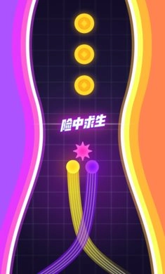 道路上会出现金币与红色障碍,线碰到金币就能增加分数,而且前进的距离越远,得到的分数就越高。