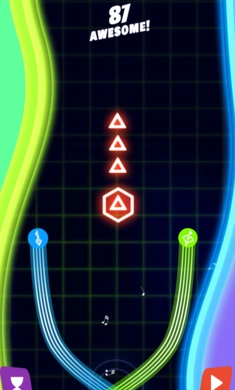玩家操控着两条线,按压屏幕时两条线会缠绕在一起,松开手指后两条线便会分开。