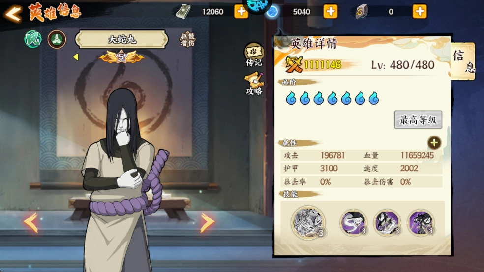 2.资源可集中向输出英雄倾斜,群体攻击型角色(如纲手、自来也)的性价比尤为突出,具体的搭配方案可依据后期的阵容规划进行灵活调整。