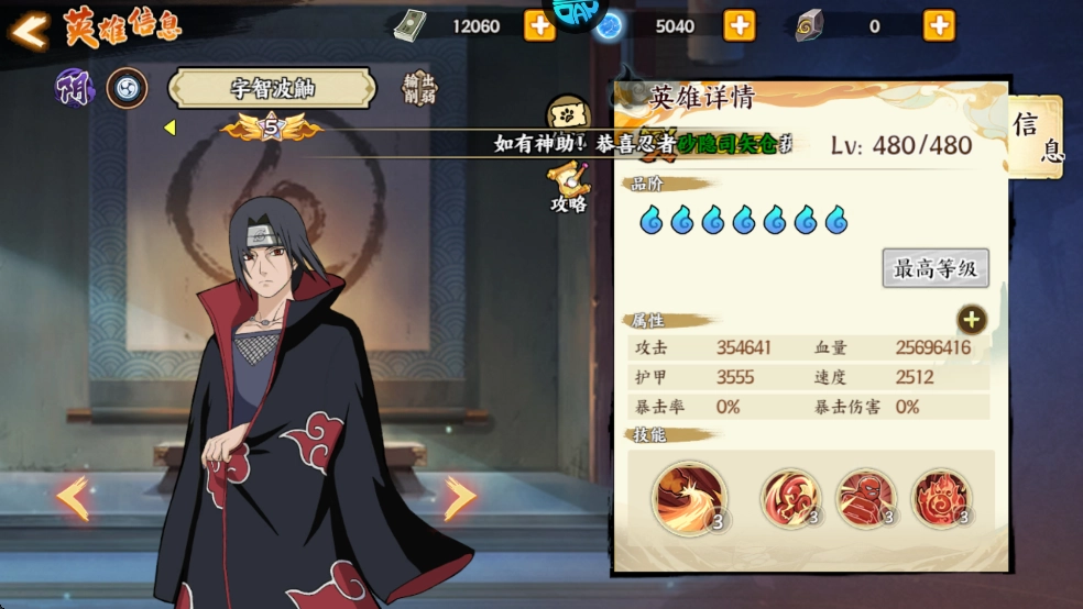 4.优先推荐SS级九尾鸣人或者SSS级轮回眼斑,这两个角色的养成难度相对较低;之后可以补充培养仙人自来也(通过充值获取),它在实战中的战力表现十分出色。