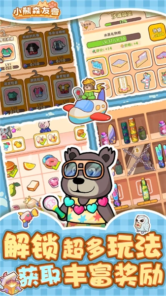小熊森友会是一款主打休闲益智的经营类游戏,整体氛围欢乐又不失挑战。游戏里,玩家将化身被职场压力压得身心俱疲的熊大,从一无所有起步,通过收集各类资源,搭建起奇奇怪怪又妙趣横生的游乐设施,一步步把原本普通的森林乐园打造成游客们交口称赞的好去处。随着乐园人气渐长,森林里各式各样的动物伙伴们都会被吸引过来游玩,玩家还能解锁更多新奇设施,让自己的乐园越来越红火。
