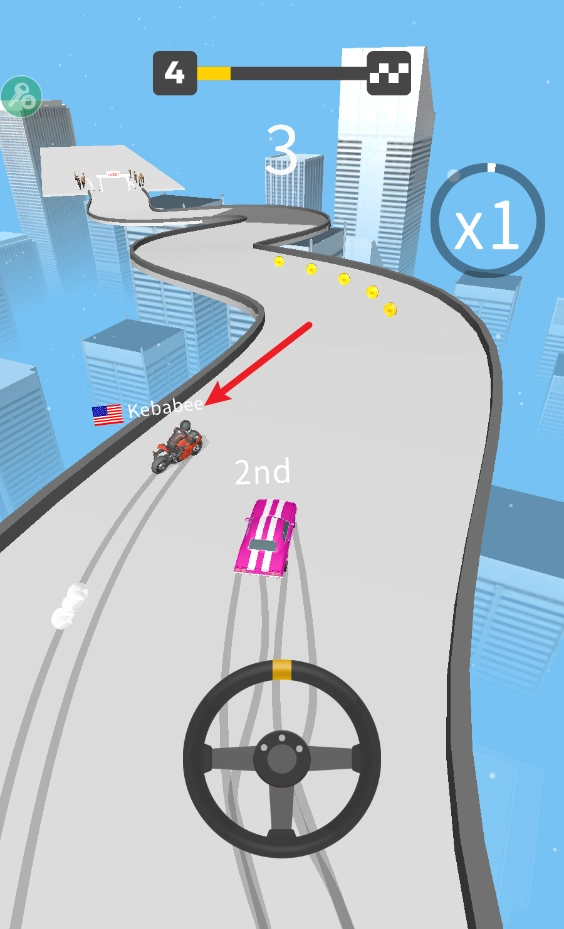 2、秀出你超棒的漂移技术吧,漂移过弯漂得漂亮就能得到短暂的加速,帮你一下子拉开和对手的距离!