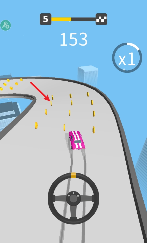 1、开始对局后,我们通过中间的方向盘控制车辆移动。