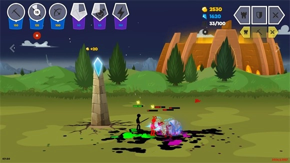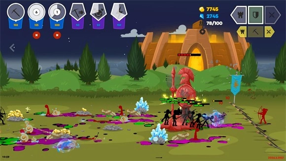 1、玩家将置身于紧张激烈的战场之中,指挥专属的火柴人勇士展开战斗,游戏内还提供了丰富多样的火柴人士兵类型供玩家训练培养;