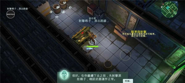 这款游戏采用标准的45度视角,左侧按钮用于操控人物移动,右侧按钮则负责武器发射。