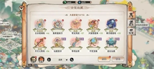 第四点是古宝系统。在游戏里,古宝的获取方式和弟子招募类似,都能通过消耗灵玉购买许愿币,然后进行十连抽。如果资源充足的话,直接把次数拉满就行;虽然它提升的战力不算多,性价比相对一般,但对游戏内的生产效率却能起到不错的增益效果。