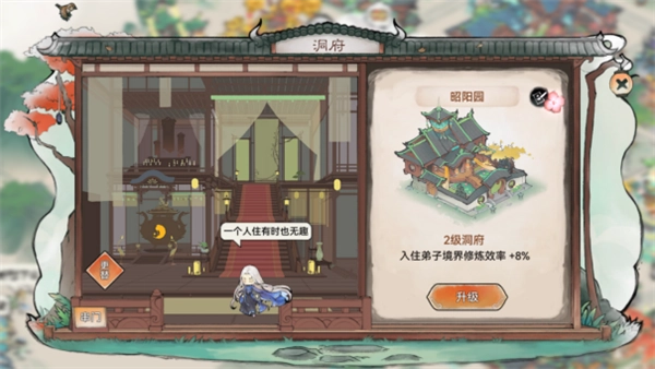 一间洞府仅限一名弟子入住,入住弟子的境界修炼效率会有所提升,且洞府支持升级操作。