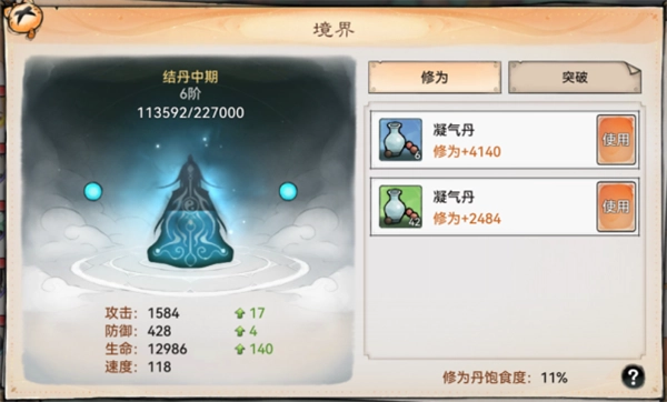 弟子使用【修为丹】能够快速提升境界修为,这是游戏里获取修为最关键的方式。