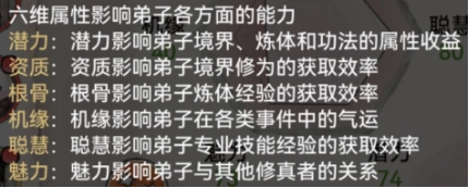 聊到这个就不得不浅聊下弟子的六维属性了: