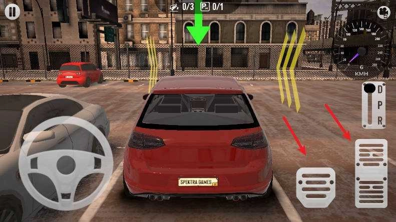 加速与刹车操作:屏幕右下角分别设有油门和制动按钮,采用渐进式响应设计。停车成功的关键在于合理控制踩踏力度——力度过猛容易冲出车位,过轻则难以停到准确位置,特别是倒车入库时,对力度的精准把控要求更高。