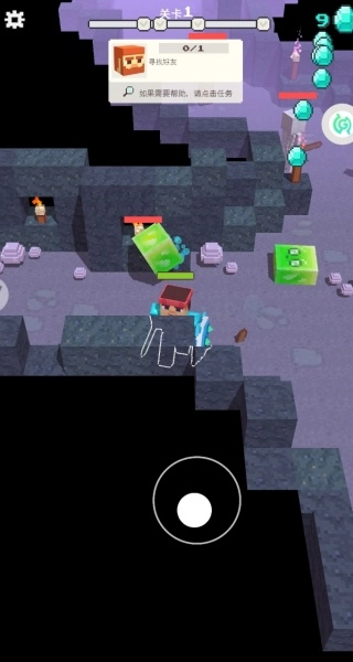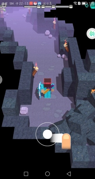 通过虚拟摇杆可以精准控制角色在洞穴秘境里移动,遇到危险生物时要快速躲避。