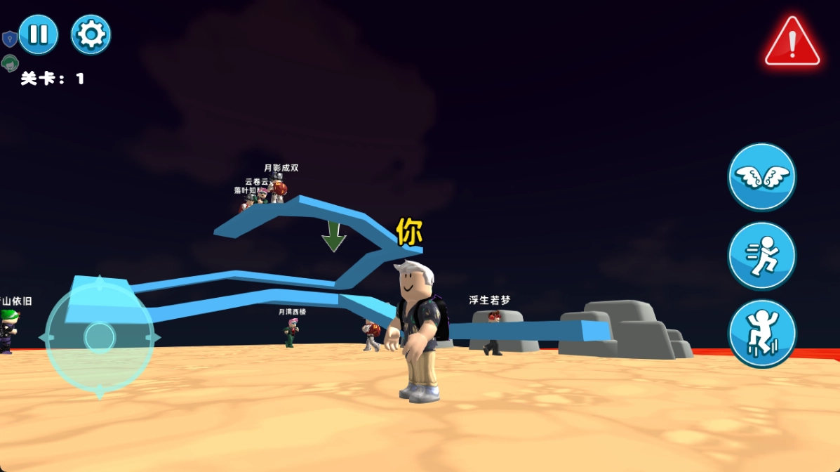 通过点击和滑动的操作方式,控制方块人在场景里完成移动与跳跃的动作。