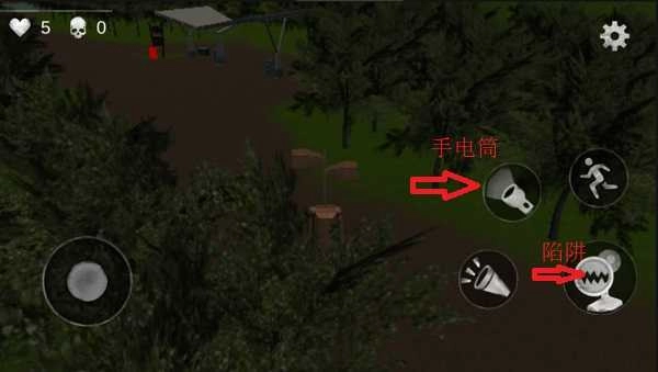 界面右下角整合了手电筒功能,能用于远距离照明;此外,该区域还设有陷阱布设机制,点击后会触发布控动画,从而完成战术部署。