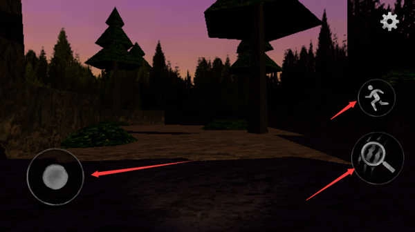 左侧的虚拟摇杆用于控制移动方向,右侧的功能键分别对应跳跃、视角切换以及与场景物品的交互操作,整体操作逻辑清晰且直观。