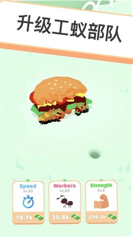 玩家通过点击操作控制蚂蚁搬运食物,把食物运回蚂蚁巢穴。