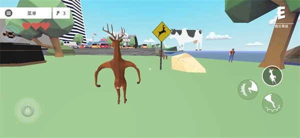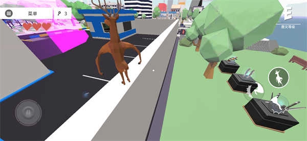 3、操控这只叛逆小鹿与城市里的各类生物互动,尽情宣泄破坏欲——掀翻车辆、喷火焚楼、横冲直撞,简直无所不能;