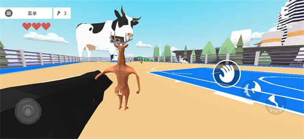 奶牛的位置在哪里呢?整张地图里总共有三只,等你重生之后,就朝着远处体型最大的那只走。路上会路过一个篮球场,场子里刚好有两只奶牛在玩耍,你随便选其中一只就行啦。