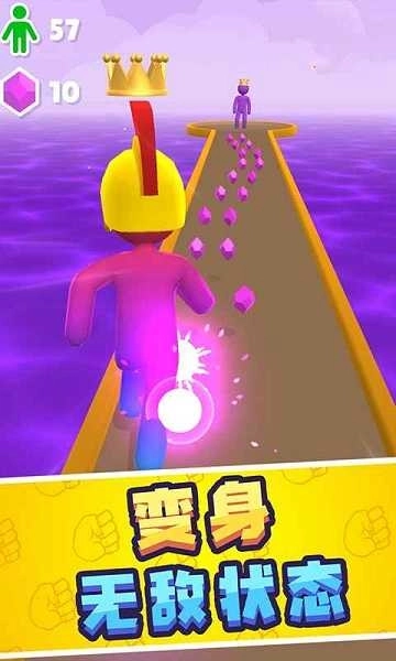 游戏融合跑酷与动作成长机制:巨人自动向前奔跑,玩家仅需左右滑动精准走位,沿途收集散落的小人——每吞一个,体型增大一分,攻击力同步飙升!体积越大,可撞毁的砖墙越高、障碍越难不倒你。抵达终点后,无需复杂连招,快速点击屏幕即可发动“一脚飞踢”,将BOSS凌空踹飞,伴随震撼音效与粒子特效,打击感拉满!