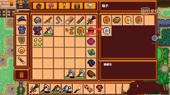 7、将储物箱中的铜币与背包中的钻石调换位置。
