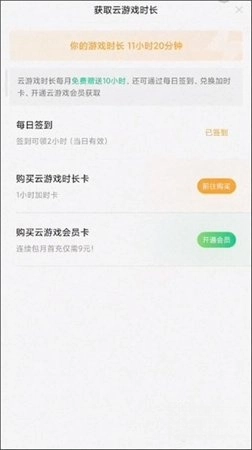 3、签到时需要退出游戏,在4399游戏盒App内点击获取云游戏时长进行签到。